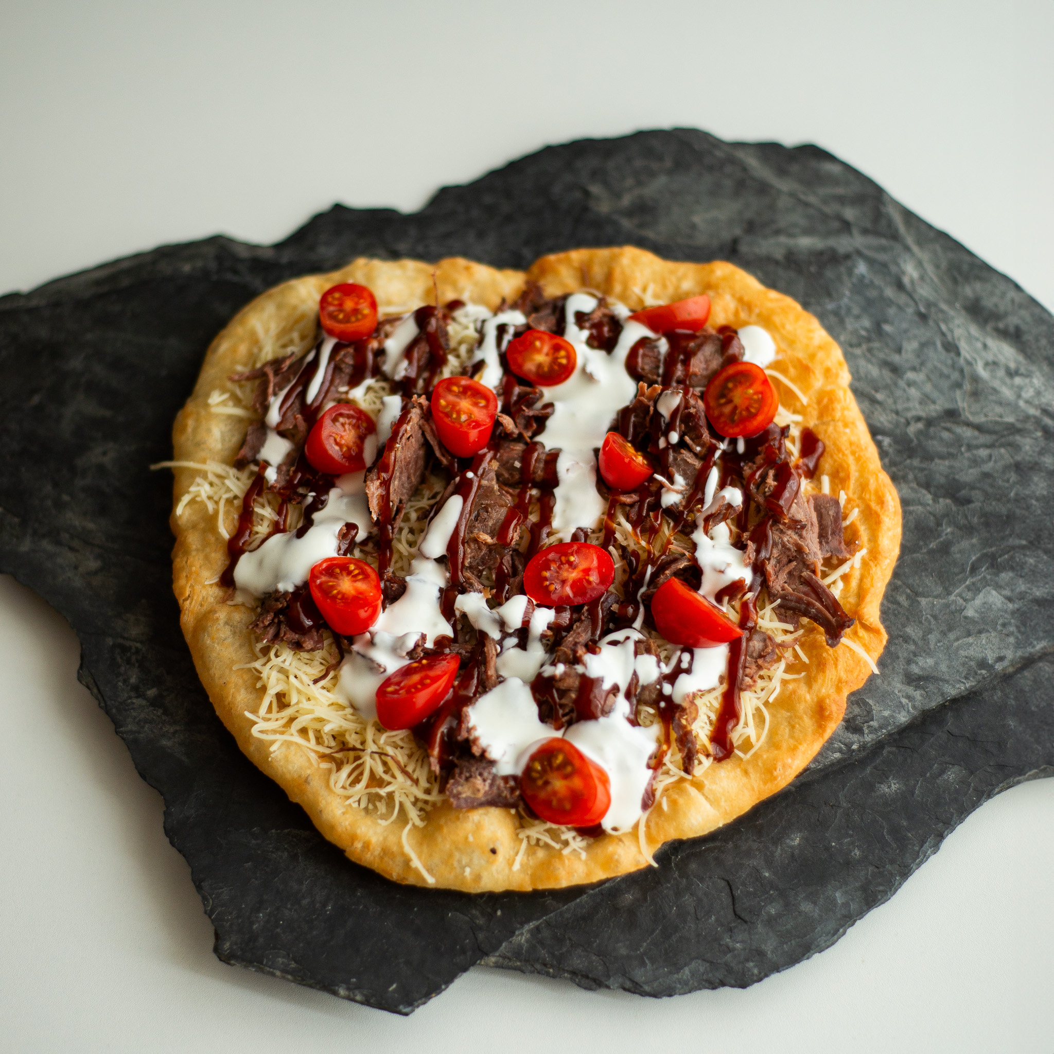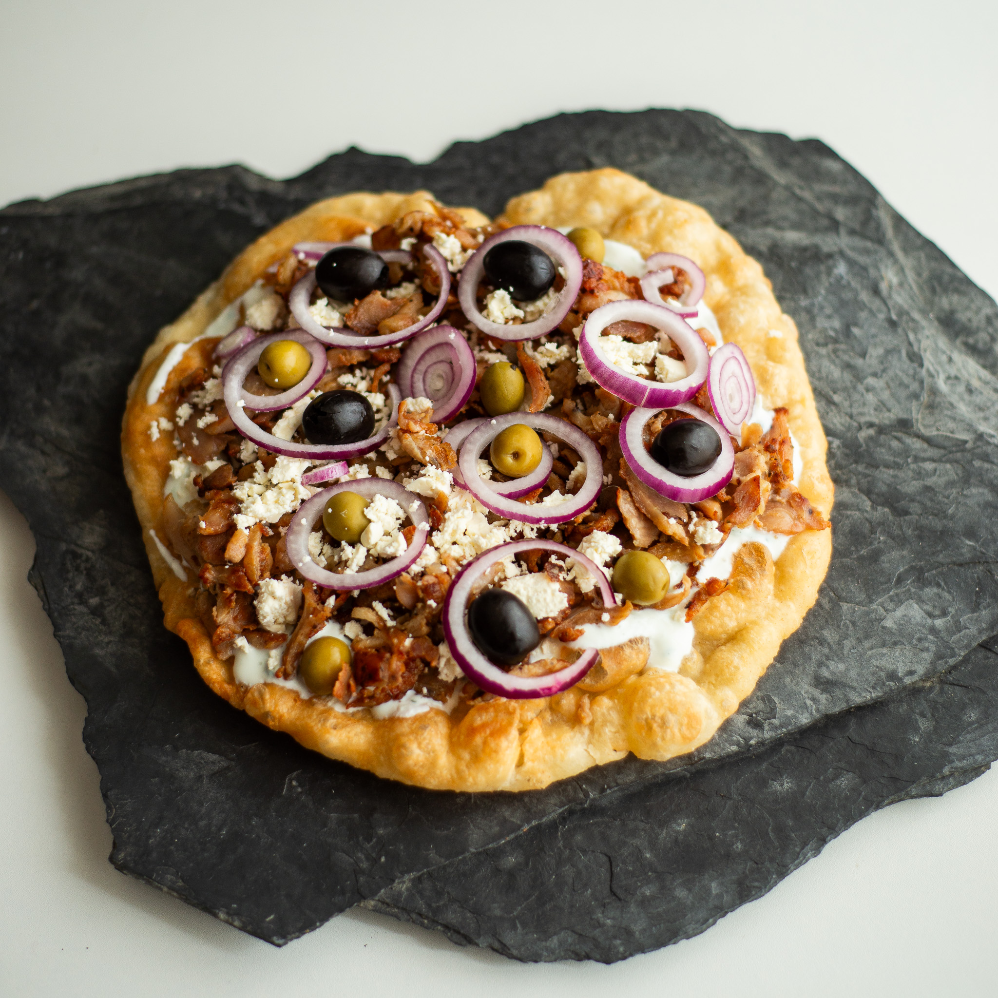 Langoše (klasický, s trhaným vepřovým, s kuřecím gyrosem)